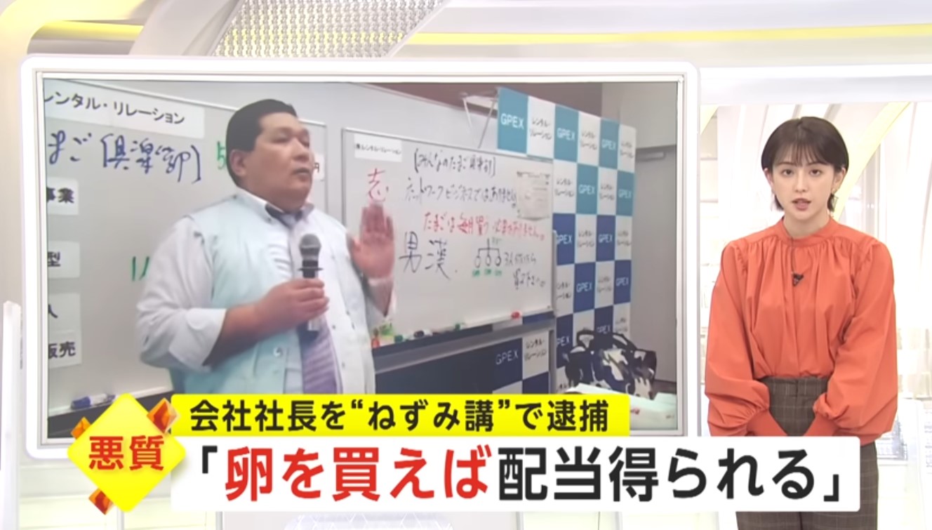 【悲報】毎月13900円で90個卵を買えば毎月最大160万円貰えるビジネス、詐欺だった ねずみ講容疑で58歳代表逮捕