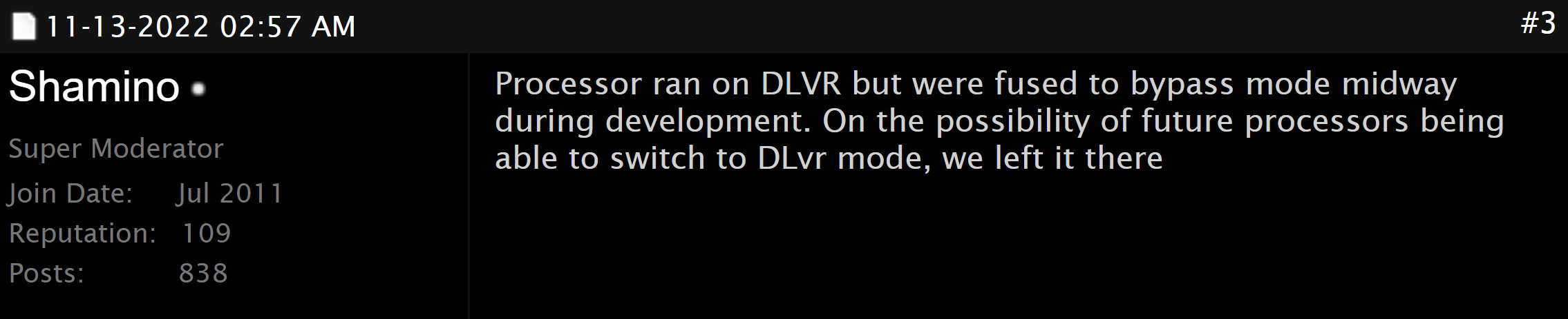 ASUS社内オーバークロッカーのShamino氏は、IntelがRaptor LakeプロセッサでDLVRを融合(無効化)したため、この機能が働かないことを確認した。ただし、将来のCPUがまだサポートしている可能性はある。