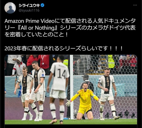 Amazon Prime Videoにて配信される人気ドキュメンタリー『All or Nothing』シリーズのカメラがドイツ代表を密着していたとのこと!