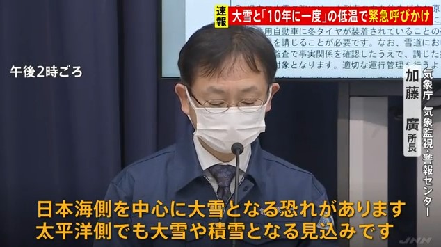 気象庁・国交省「不要不急の外出控えて!」 10年に1度の大寒波で緊急の呼びかけ