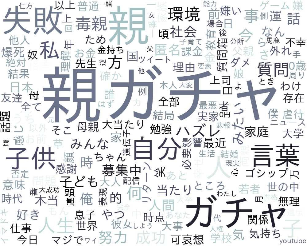 最も多く使われた言葉は「失敗」だ。「親ガチャ失敗した」などの投稿が目立ち、同じような意味で「ハズレ」も多く使われている。