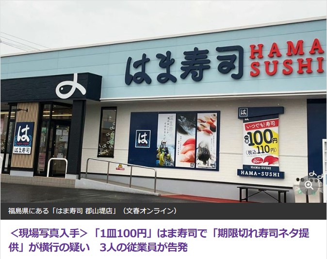 はま寿司、郡山堤店が数年前から使用期限切れの食材を提供していたことを認める なお社員の店長は知らなかった模様