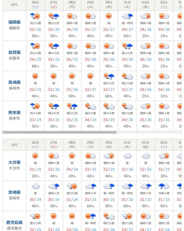 九州は暑さから開放された模様