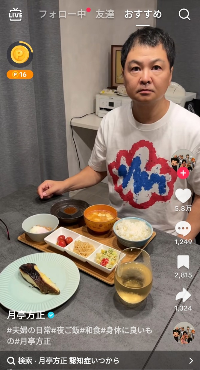 tiktokで山崎 邦正さんが朝メシ食べる動画が大好きなんだけど、なんかコメント欄で勝手に認知症なのでは!?って盛り上がってて、AI予測の関連検索ワードも「月亭方正 認知症いつから」で笑った。